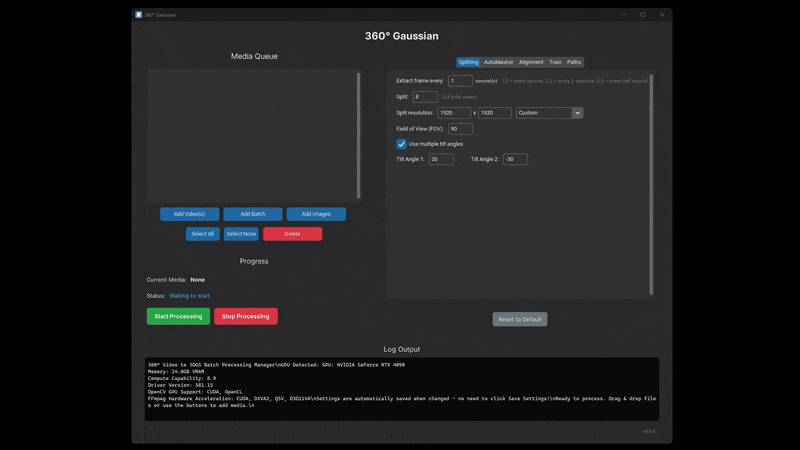 Software for automatically training 3D Gaussian splats from 360° video or image sequences.