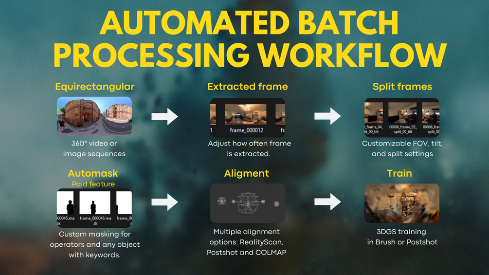 I'm a solo developer who started creating this software to meet my own need for fast, batch-processed 3DGS from film locations for virtual location scouting.